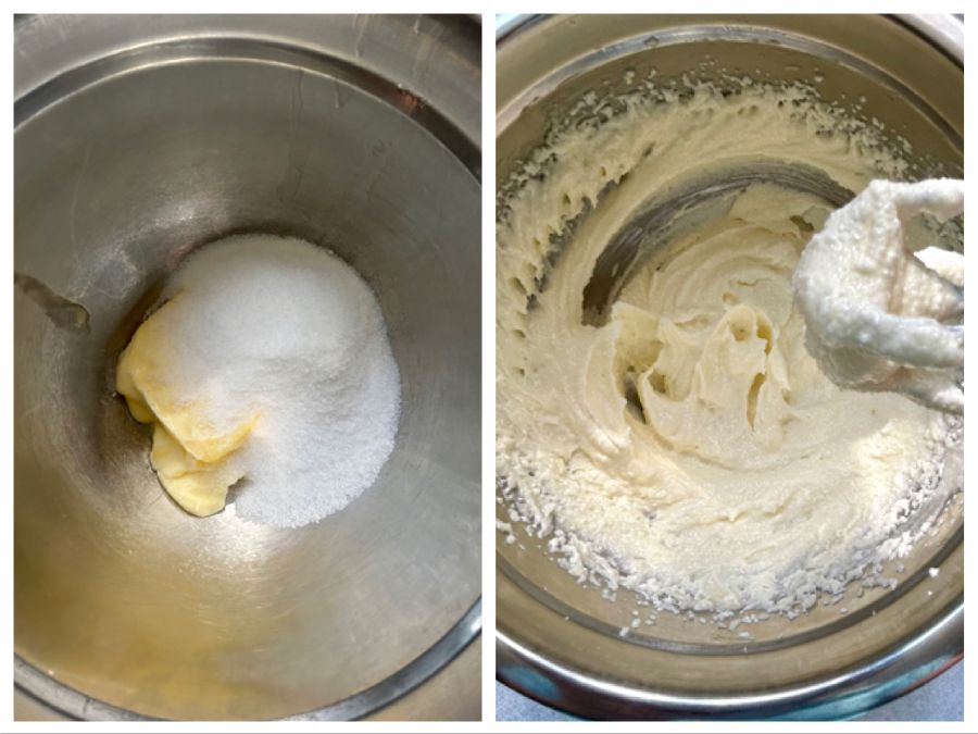 1. In a large bowl, beat softened butter and sugar with an electric mixer till it becomes fluffy.