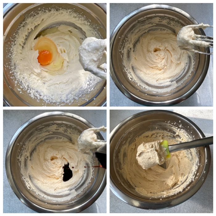- Then add egg and beat again till becomes light, pale and fluffy. Now and vanilla extract and mix well.