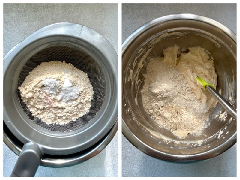 - Sieve wholewheat flour, baking soda, baking powder and salt in a bowl.